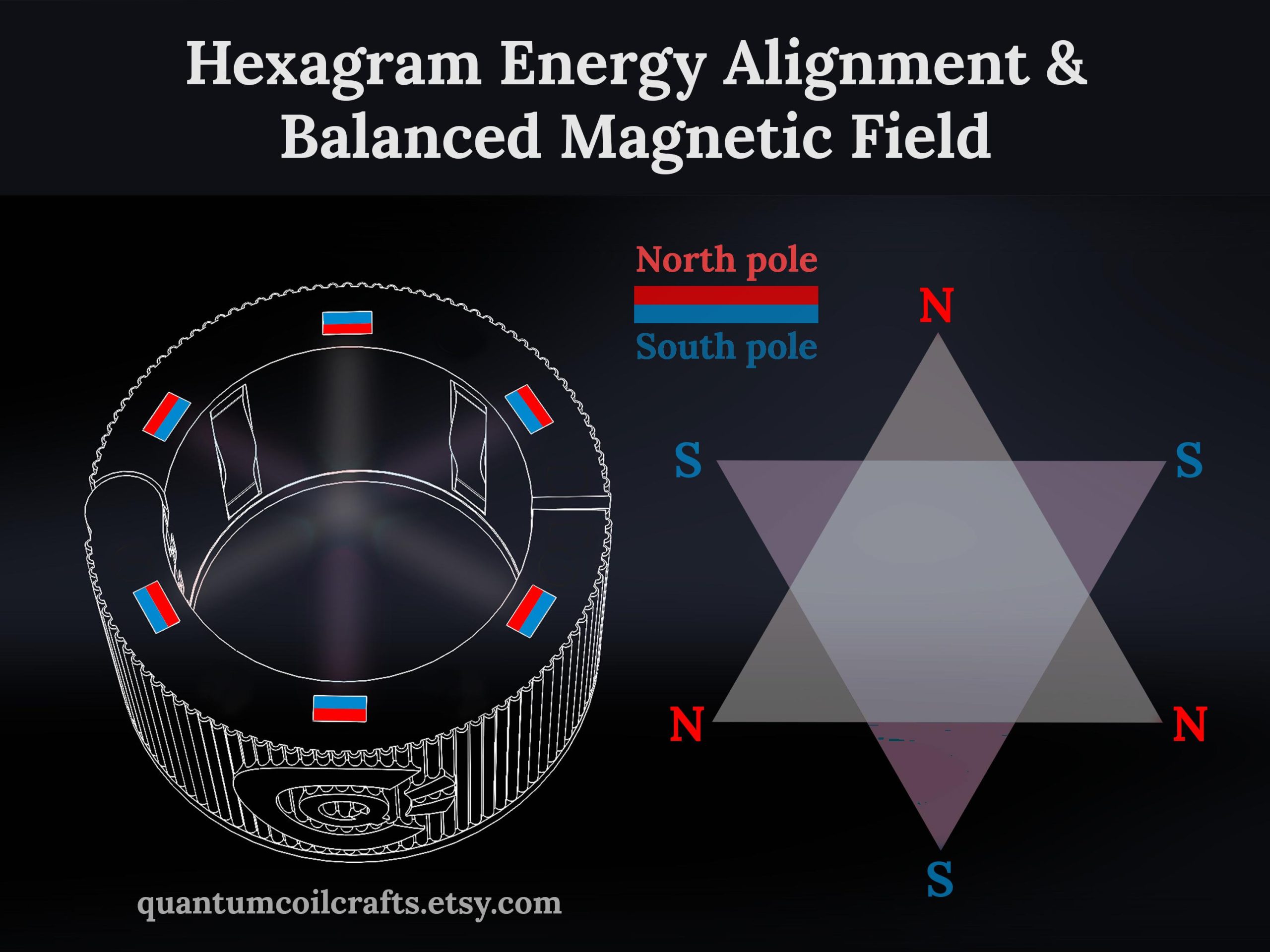 🔹 Hexagram Energy Alignment: Six magnets in sacred geometry formation create a structured energy field